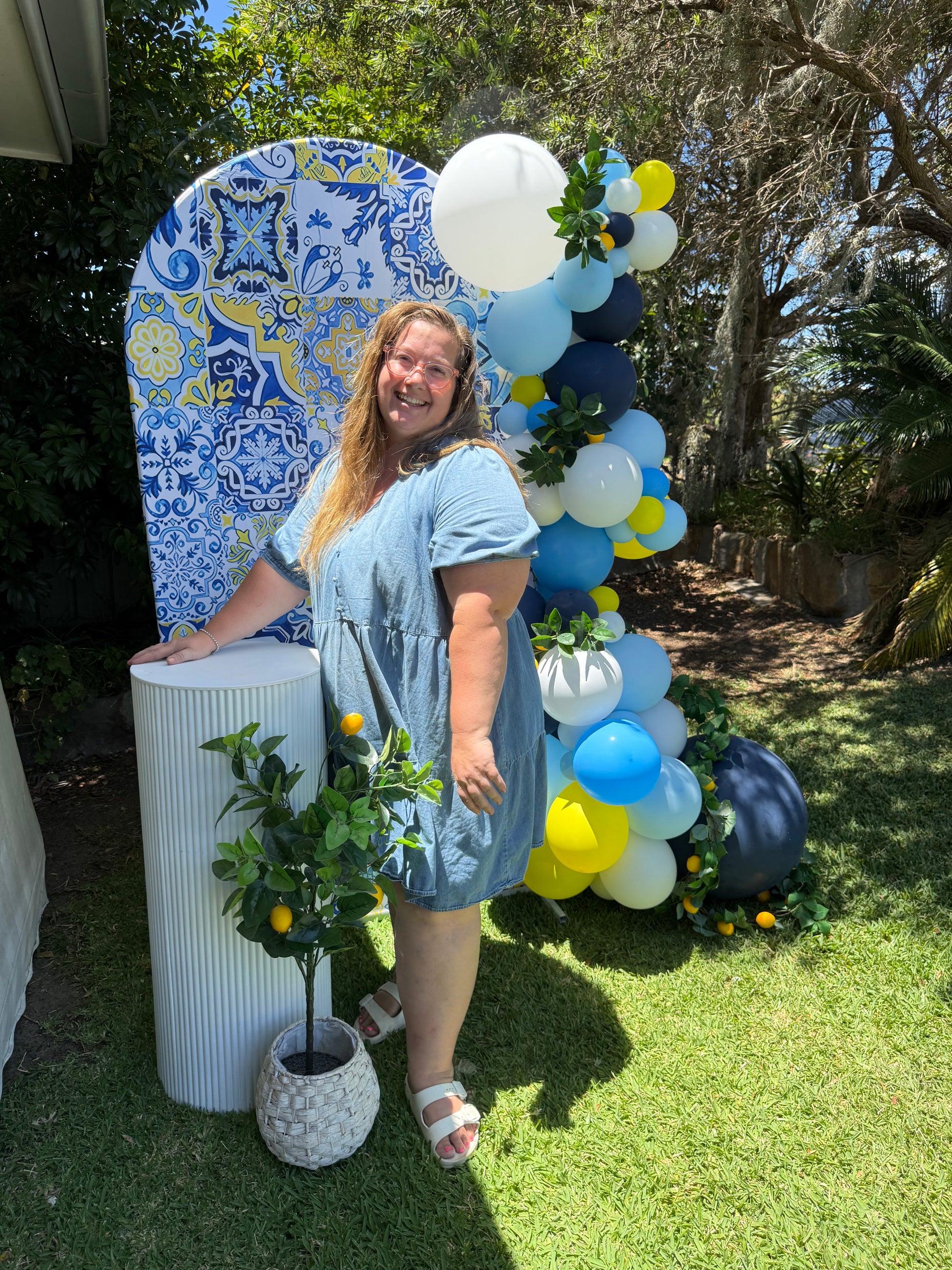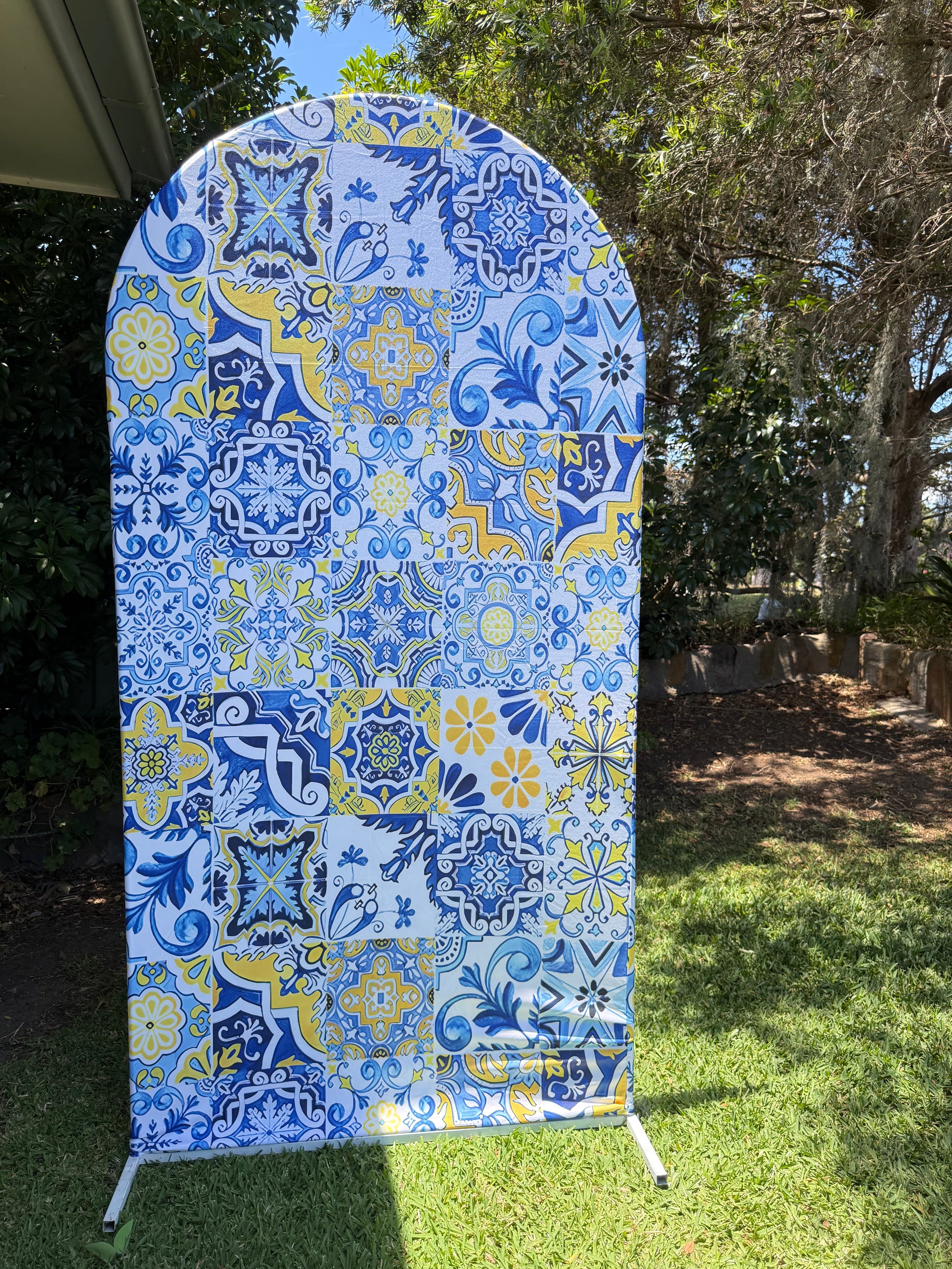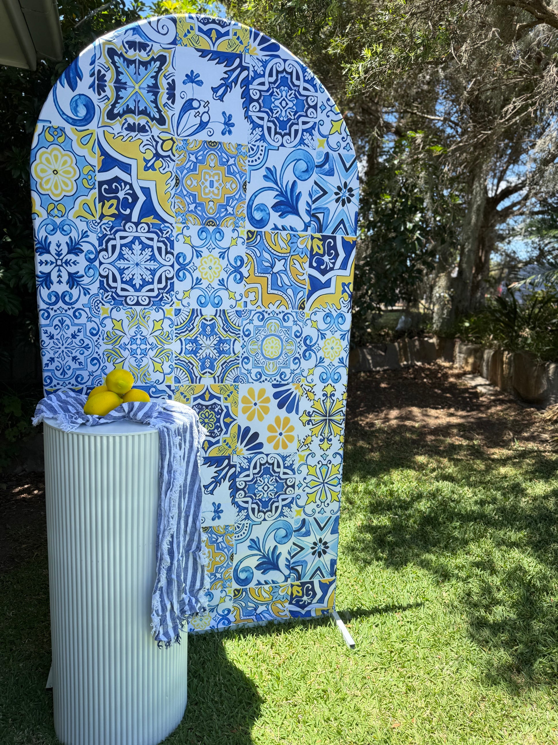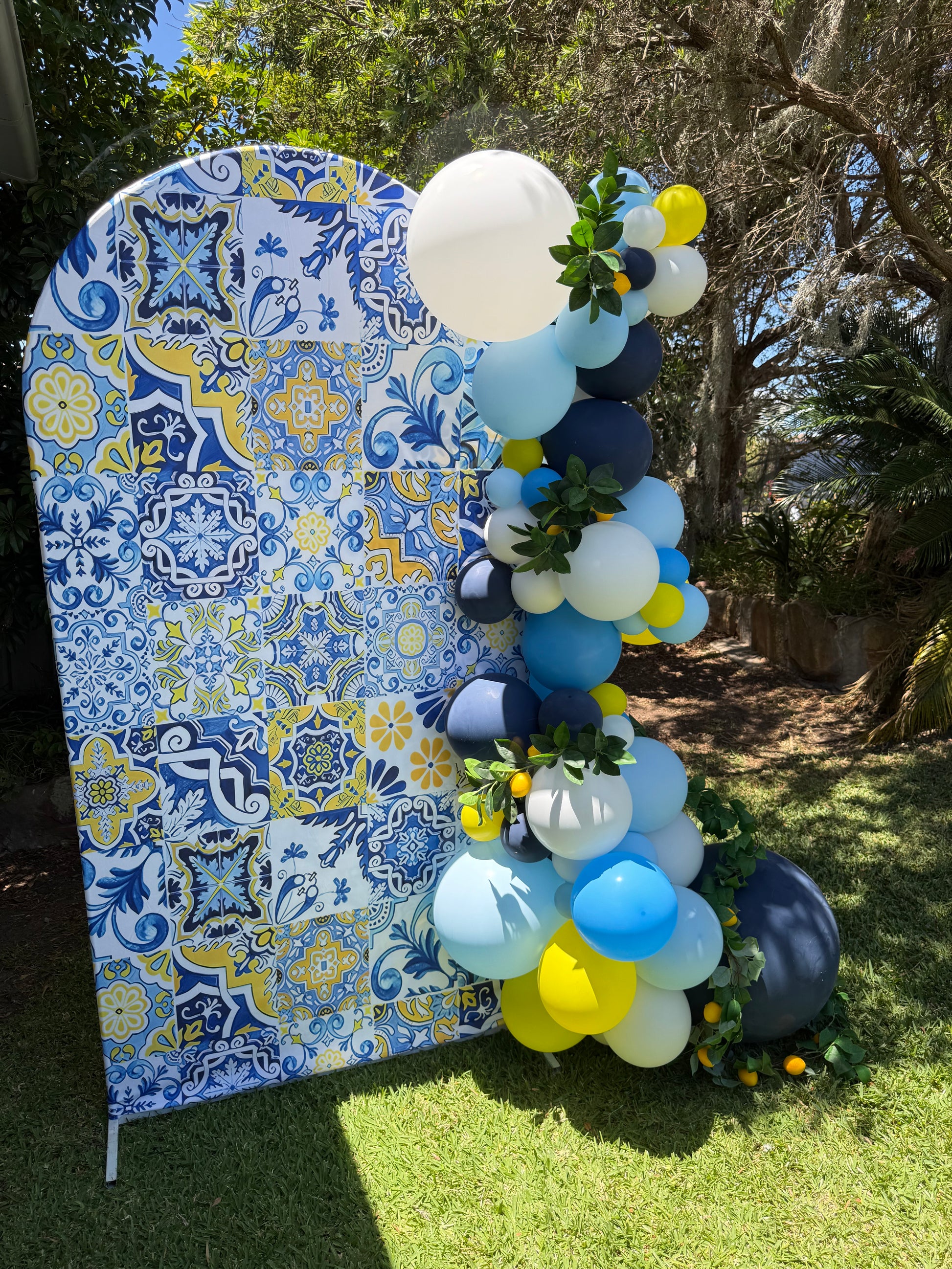 Such a cute vibe for your event! This Amalfi arch with blue and yellow is stunning.