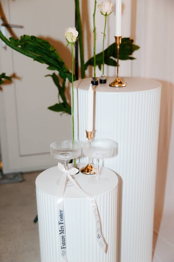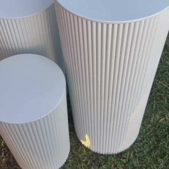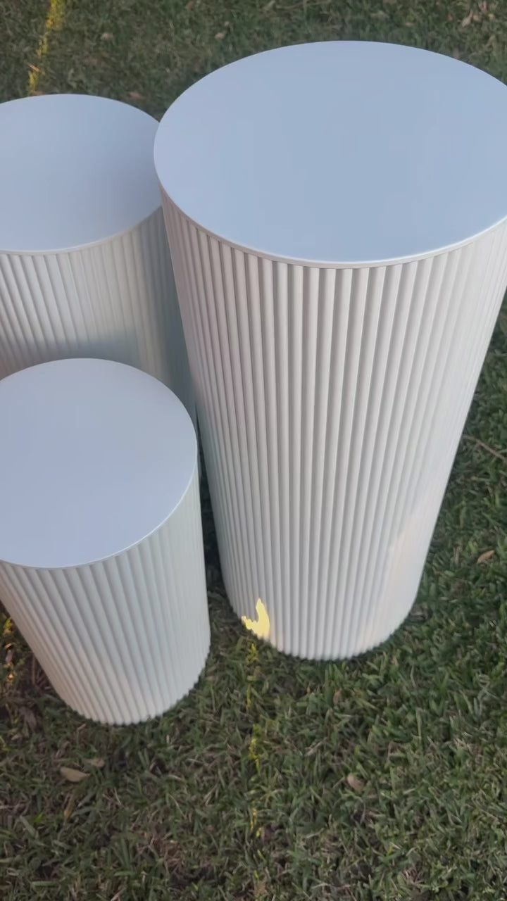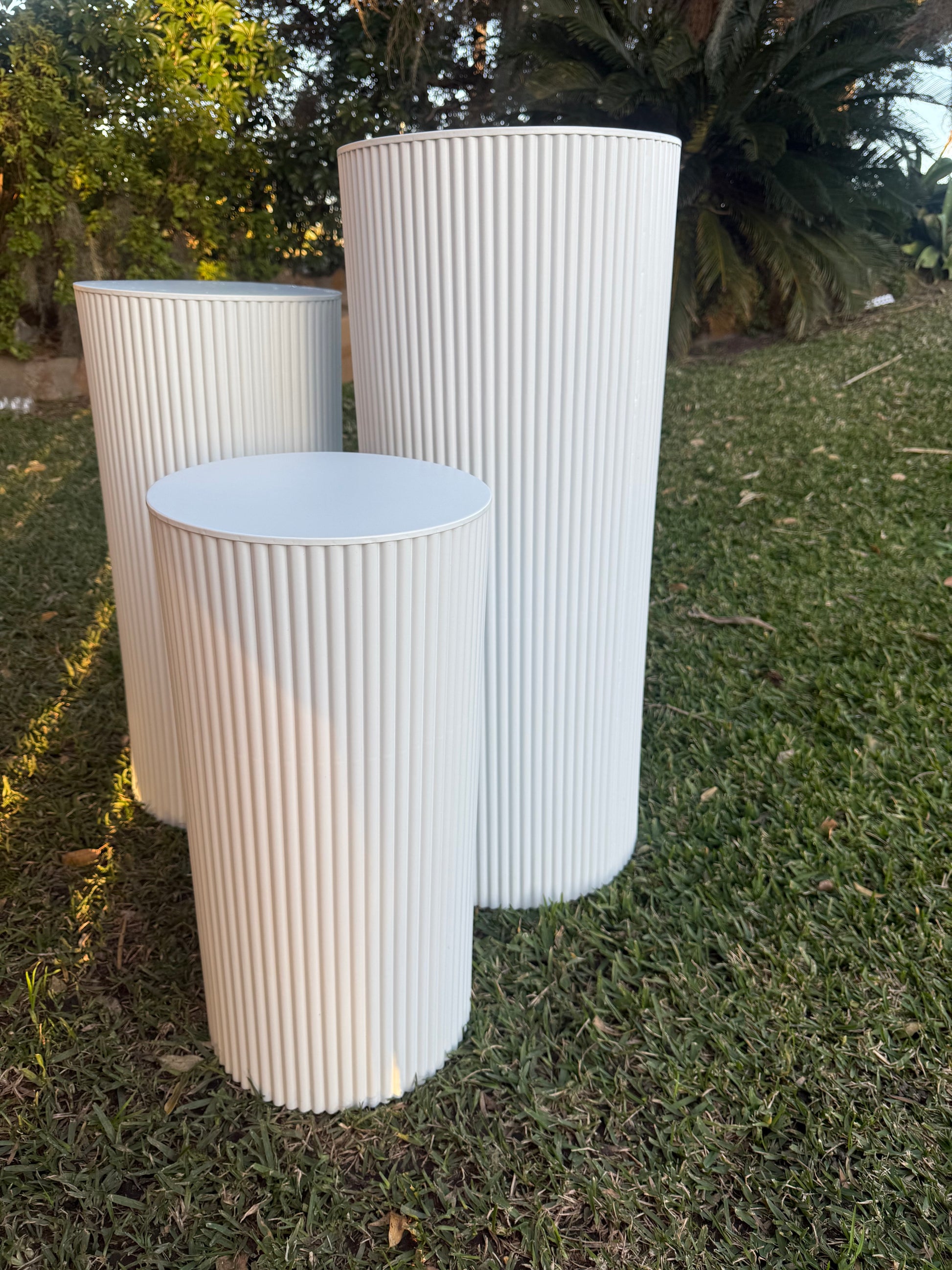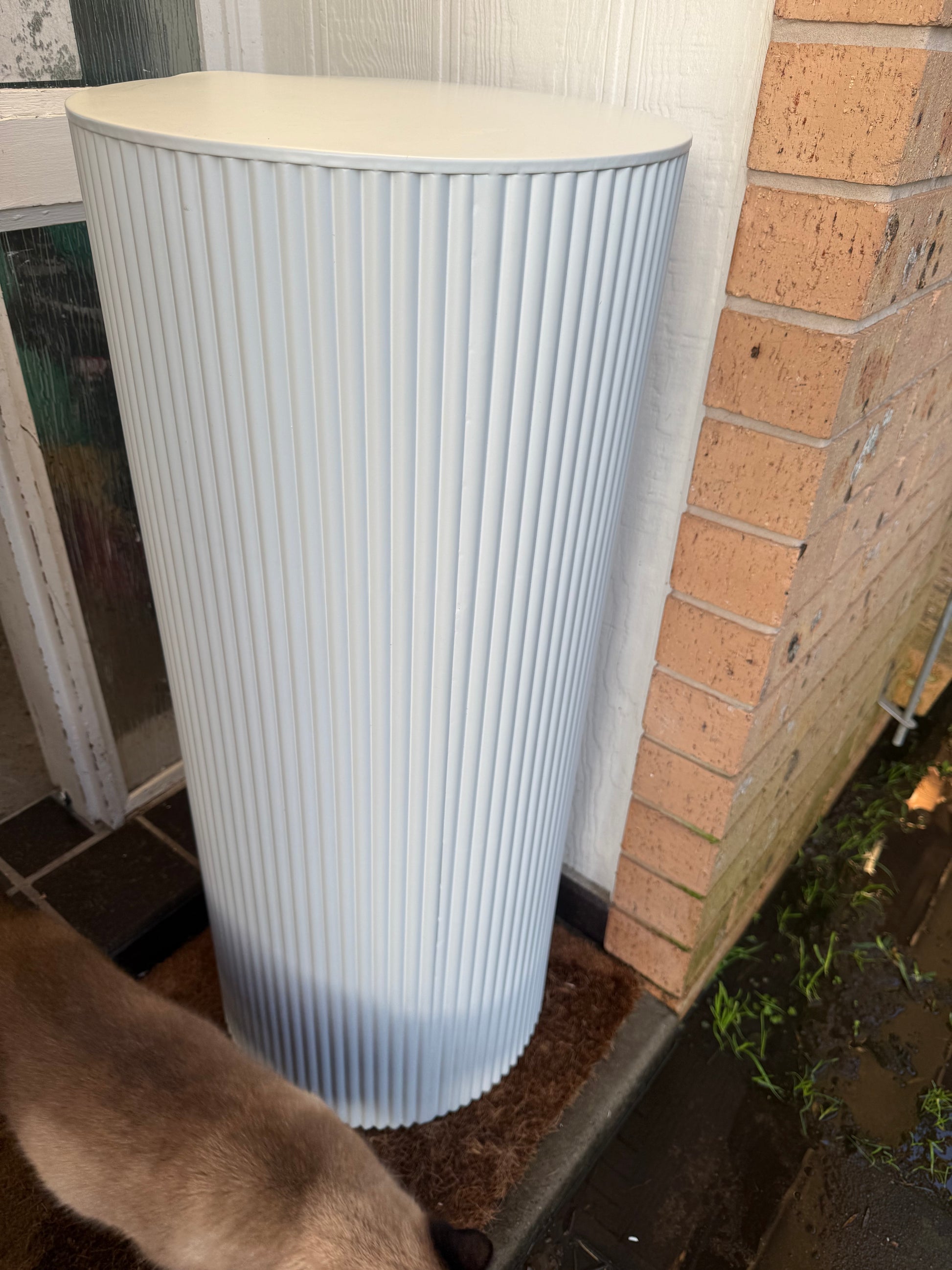 Ribbed plinth, $40 each (large plinth had a customer drop it and flake of some paint on the top on one side, this damage is touched up with white paint and when faced at the back it’s unnoticeable see photos, this is still fine from the front however a new large plinth is on order)